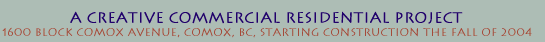Comox Quay II is scheduled for completion and occupancy in March of 2006. If you would like to receive updated information on this project, please contact us at kelly@comoxquay.com.